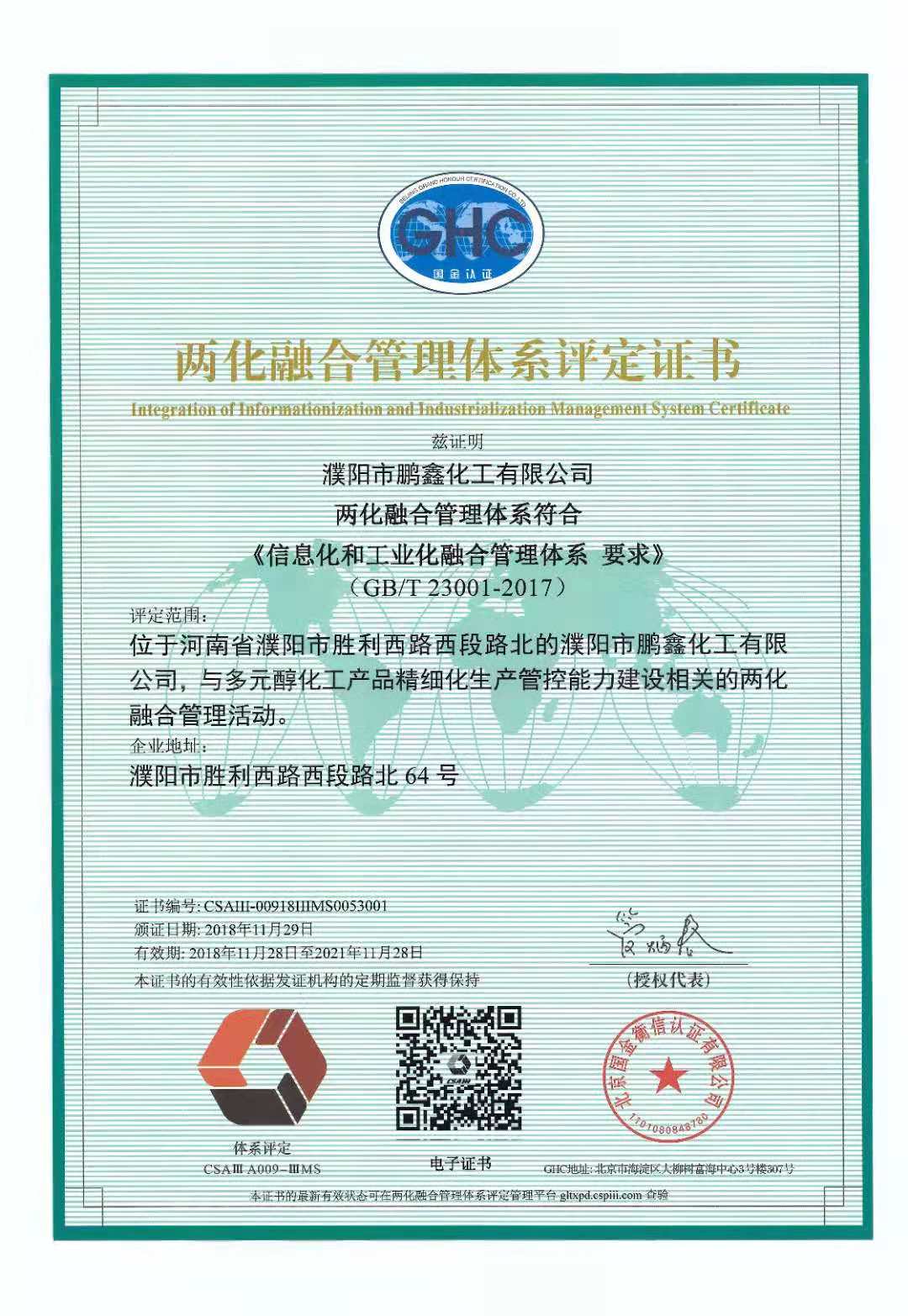 兩化融合貫標(biāo)企業(yè)認(rèn)定證書